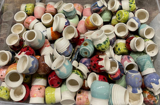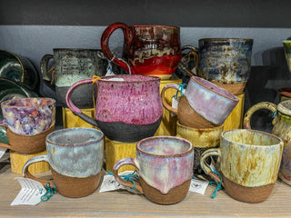 We are a working pottery studio, and everything you see on our shelves is made right here in-house. None of our pieces are mass-produced — each one is as unique as the artist who created it.